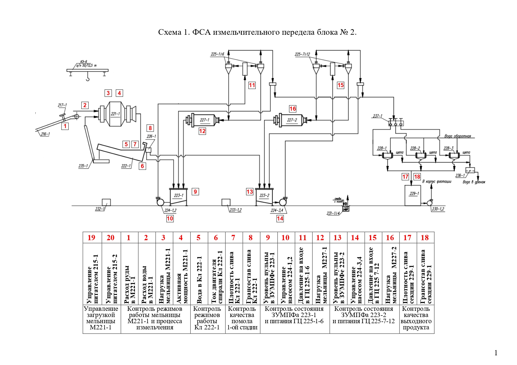 - К2 — регулирование водного режима измельчения путём поддержания оптимального соотношения Т/Ж.